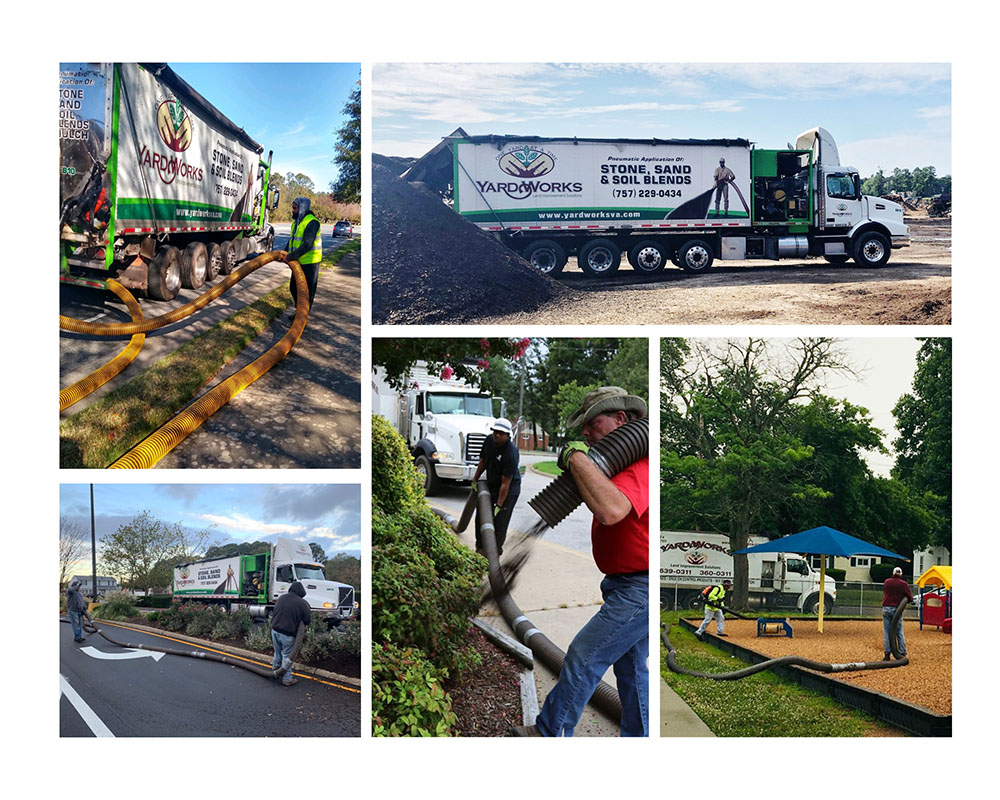 Yard Works installs many of the products we manufacture. Our state of the art blower trucks are a quick and easy way to lay mulch and playground surfacing. Our blower service replaces dozens of workers and takes only a fraction of the time. And our installers are professionally trained to apply material evenly, cutting your labor and material costs in half. We also have the ability to install soil and compost in those hard-to-reach areas, saving time and money, and not to mention, your back! Our installation services are available to homeowners, municipalities, the military, daycares and professional landscape contractors and are especially helpful for large-scale jobs. In addition, we are also Central Virginia’s only Certified Filtrexx™ installer. Let Yard Works’ reliable staff take care of you and your installation needs!