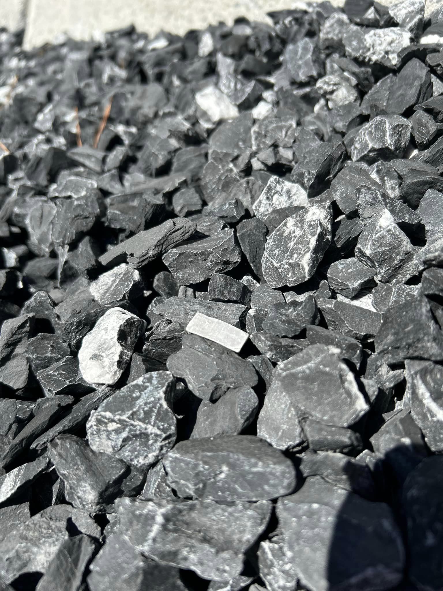 Mined in AltaVista, Virginia. A beautiful dark gray blue stone, approx. 1″ in size, used for driveways or in decorative flower beds.